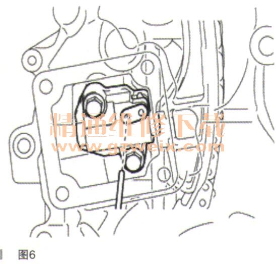 (3)如圖6所示,對準擋片和張緊器的孔,并將銷插入擋片孔內(nèi)以鎖止張緊器。