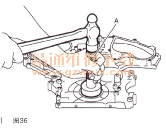 (8)在前正時(shí)鏈條箱上安裝新的前油封,如圖35所示。