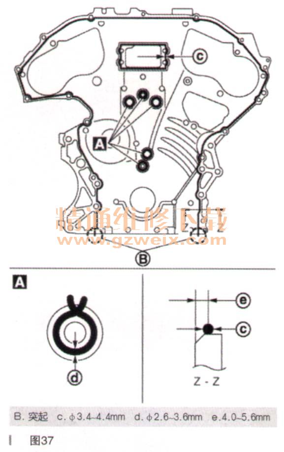 ②將液體膠涂在如圖38所示的油底殼(上部)的上表面。