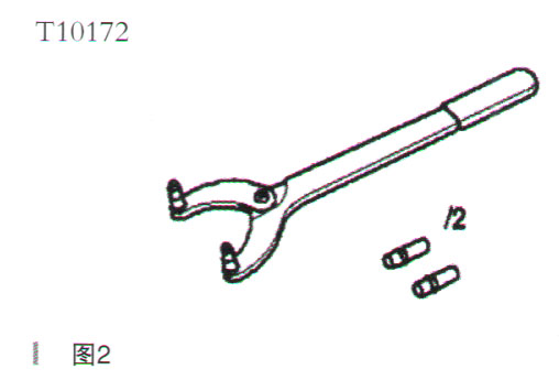 (1)定位扳手T10172或CT10172以及適配器T10172/2或CT10172/2,如圖2所示。