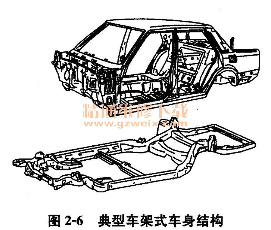 2.轎車(chē)非承載式車(chē)身結(jié)構(gòu)特點(diǎn)