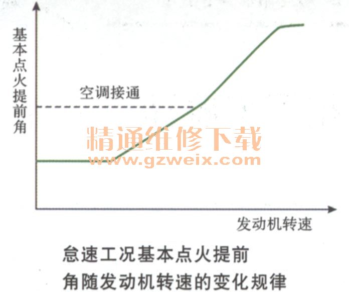 發(fā)動(dòng)機(jī)在怠速工況運(yùn)行時(shí),由于負(fù)荷變化使發(fā)動(dòng)機(jī)轉(zhuǎn)速發(fā)生變化,電控單元要調(diào)整點(diǎn)火提前角,使發(fā)動(dòng)機(jī)在規(guī)定的怠速轉(zhuǎn)速下穩(wěn)定運(yùn)轉(zhuǎn)。