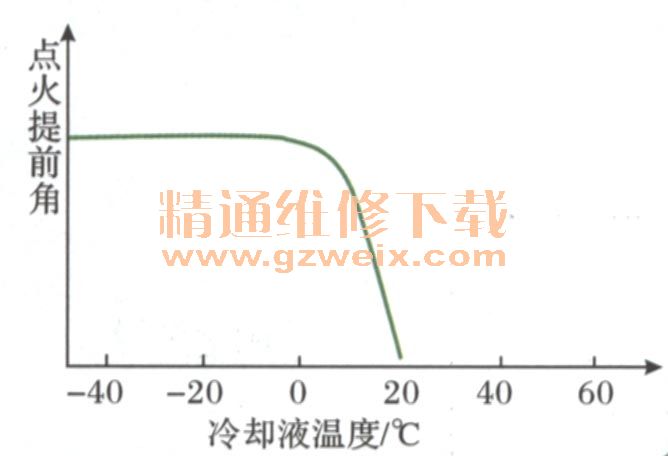 發(fā)動(dòng)機(jī)冷車(chē)起動(dòng)后,冷卻液溫度較低時(shí),應(yīng)增大點(diǎn)火提前角。在暖機(jī)過(guò)程中,隨冷卻液溫度的升高,點(diǎn)火提前角修正值逐漸減小,如左圖所示。修正值的變化規(guī)律及大小隨發(fā)動(dòng)機(jī)暖機(jī)修正的主要控制信號(hào)包括冷卻液溫度信號(hào)(THW )、空氣流量信號(hào)、節(jié)氣門(mén)位置信號(hào)(IDL)等。