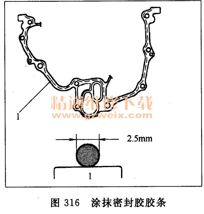 注意:沿虛線1涂抹直徑約.5mm的密封膠膠條(見圖316)。