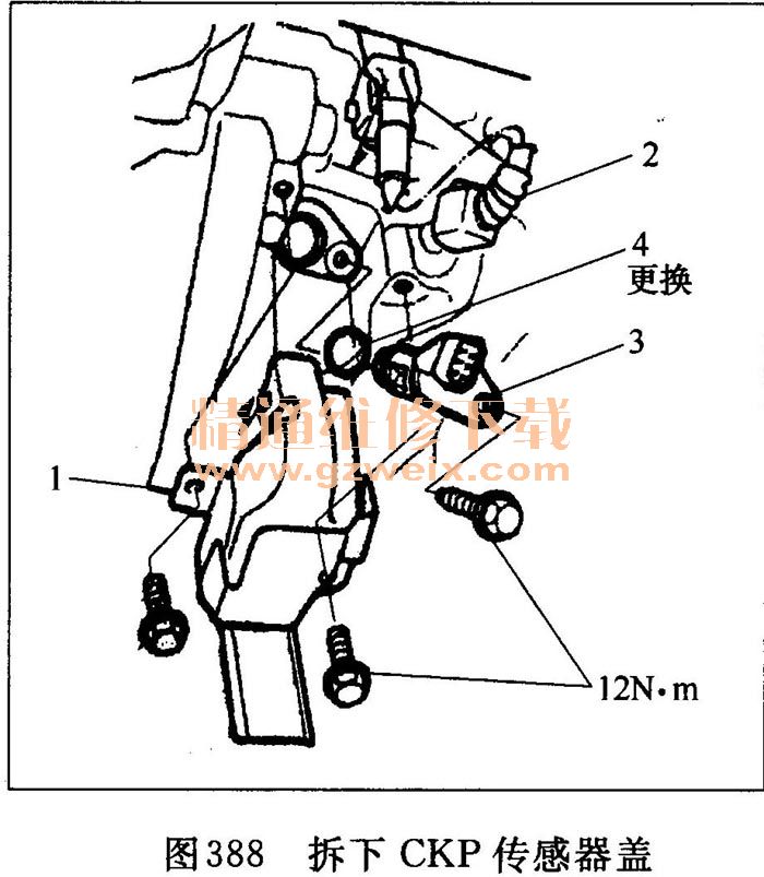 ②拆下CKP傳感器蓋1(見圖388)。