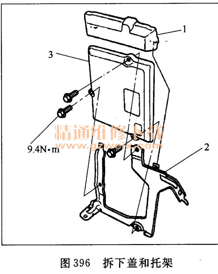 ⑨從PCM 3上拆下蓋1和托架2(見圖396)。