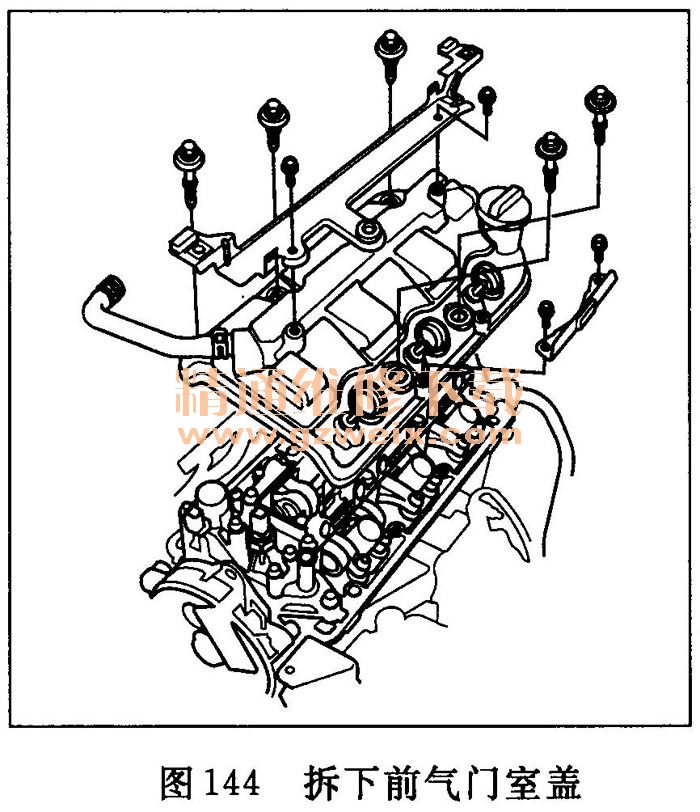 16將線束夾托架從后汽缸蓋拆下(見圖161)。