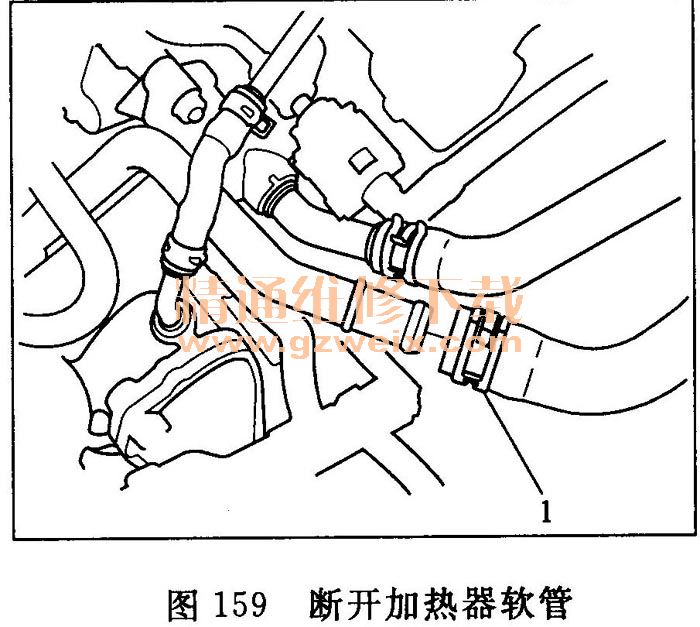 13拆下快速連接接頭蓋1,然后斷開燃油供油軟管2(見圖158)。