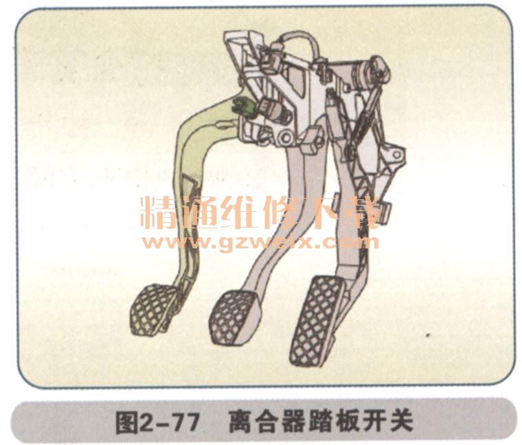 信號失效:換擋時發(fā)動機可能熄火/振動,不踩踏板時開關(guān)斷開,踩下踏板開關(guān)接通,如圖2-77所示。