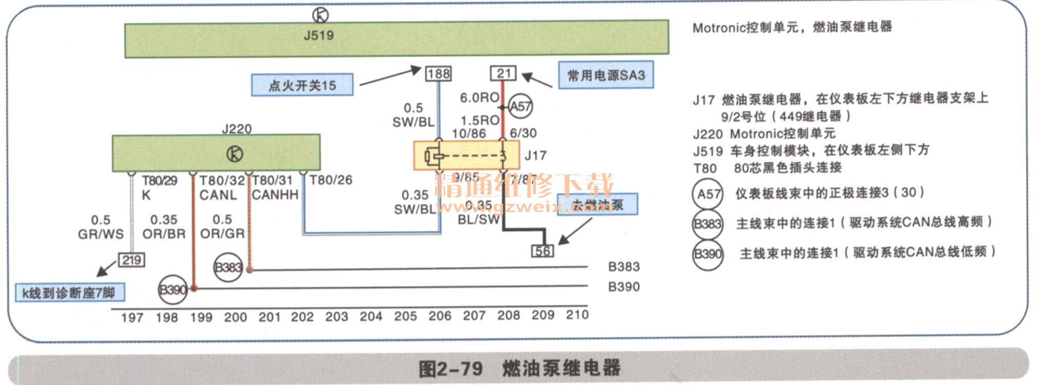燃油泵繼電器電路如圖2-79所示。