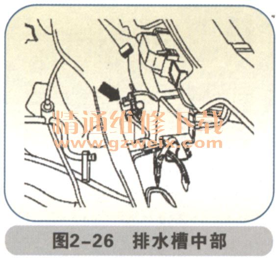 608接地點,在排水槽中部箭頭(如圖2-26所示)。