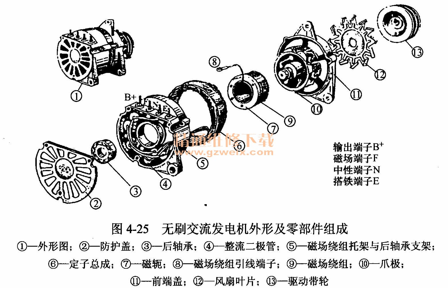 (二)整體式交流發(fā)電機分解
