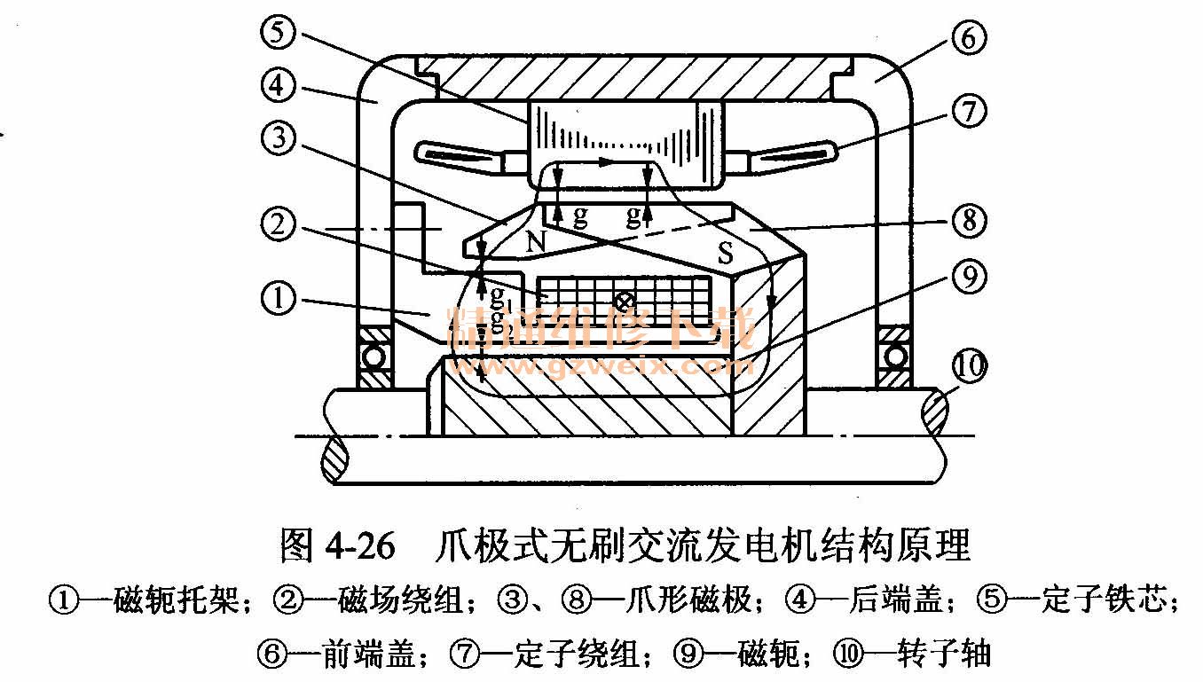 (一)爪極式無刷交流發(fā)電機結構特點