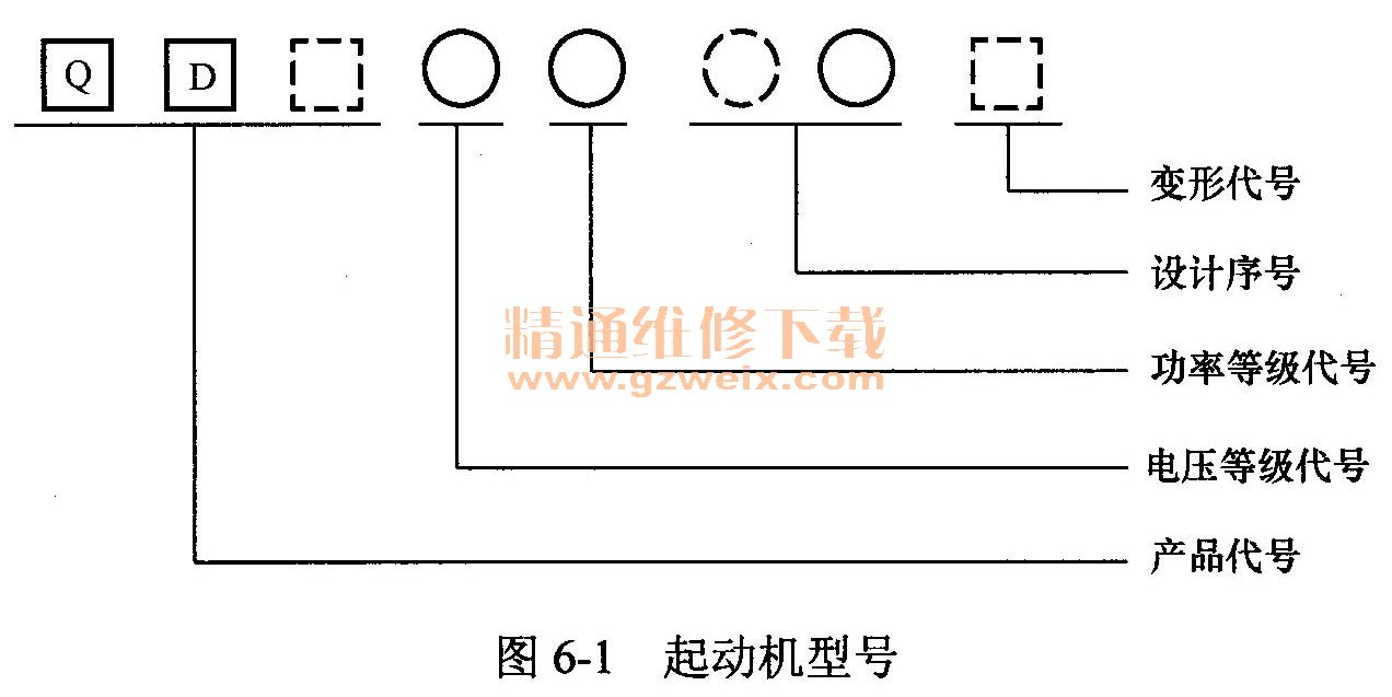 根據(jù)QC/T 73-1993的規(guī)定,汽車起動機(jī)的型號組成如圖6-1所示。