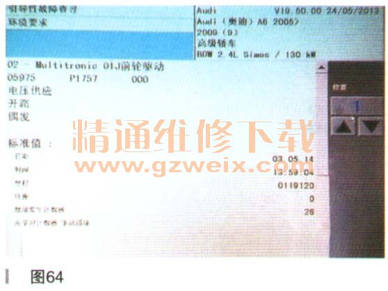 診斷儀顯示02變速器有一個故障05975,點擊下一步。