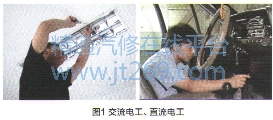 說來話長,以前汽車修理廠的工種設(shè)有“交流電工”和 “直流電工”,前者維修廠房電氣設(shè)備,后者維修汽車電器設(shè)備(圖1)。現(xiàn)在電動