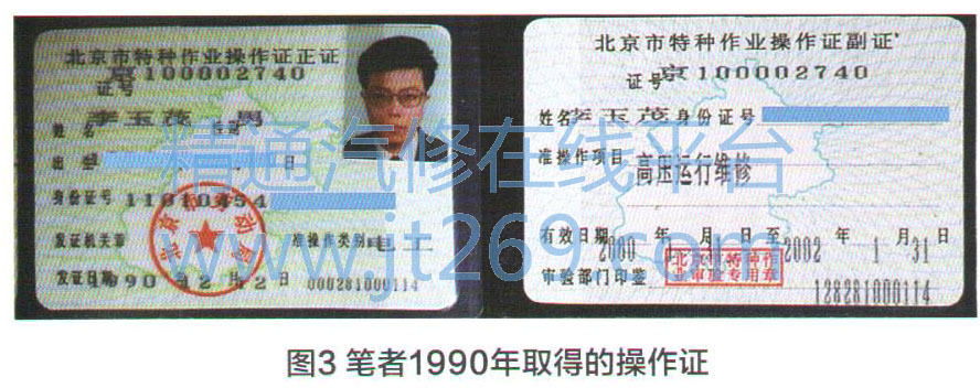 電動汽車未上市,筆者持此證合法地修理曲軸磨床、汽車舉升機等強電設(shè)備,當(dāng)時我認為汽修技術(shù)人員不僅要掌握汽車修理技術(shù),還要拓寬知識面和技能面。