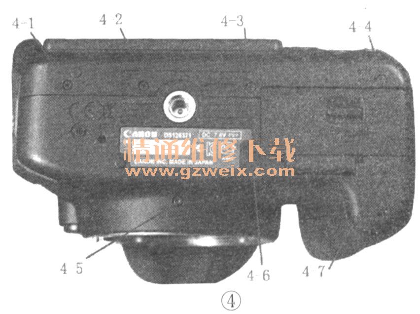 3.如圖4所示,擰下相機底部的7顆固定螺釘4-1、4-2、4-3、4-4、4-5、4-6、4-7。