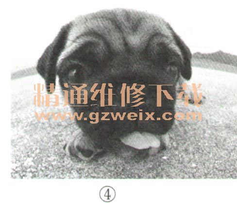 (5)于光圈小、快門要快的情況下ISO可能需要提高,例如ISO800、1SO1600等,但留意ISO越高,相片的訊噪越高,具體操作:先把相機調(diào)到光圈優(yōu)先模式(A-mode/Av-mode);再把ISO調(diào)低到IS0100或IS0200(知果在暗黑環(huán)境或室內(nèi),可以從IS0800開始);然后把光圈調(diào)到f5.6,檢查快門速度,如果發(fā)現(xiàn)快門速度慢過1/80s,可以把ISO調(diào)高(例如IS0800/ 1600) ,避免相片模糊;最后把焦距較到廣角端(如18mm),相機盡量靠近寵物,拿起玩具來吸引它們的注意,對焦后從上而下拍攝,一張可愛的大頭狗狗的相片便產(chǎn)生了,如圖4所示。