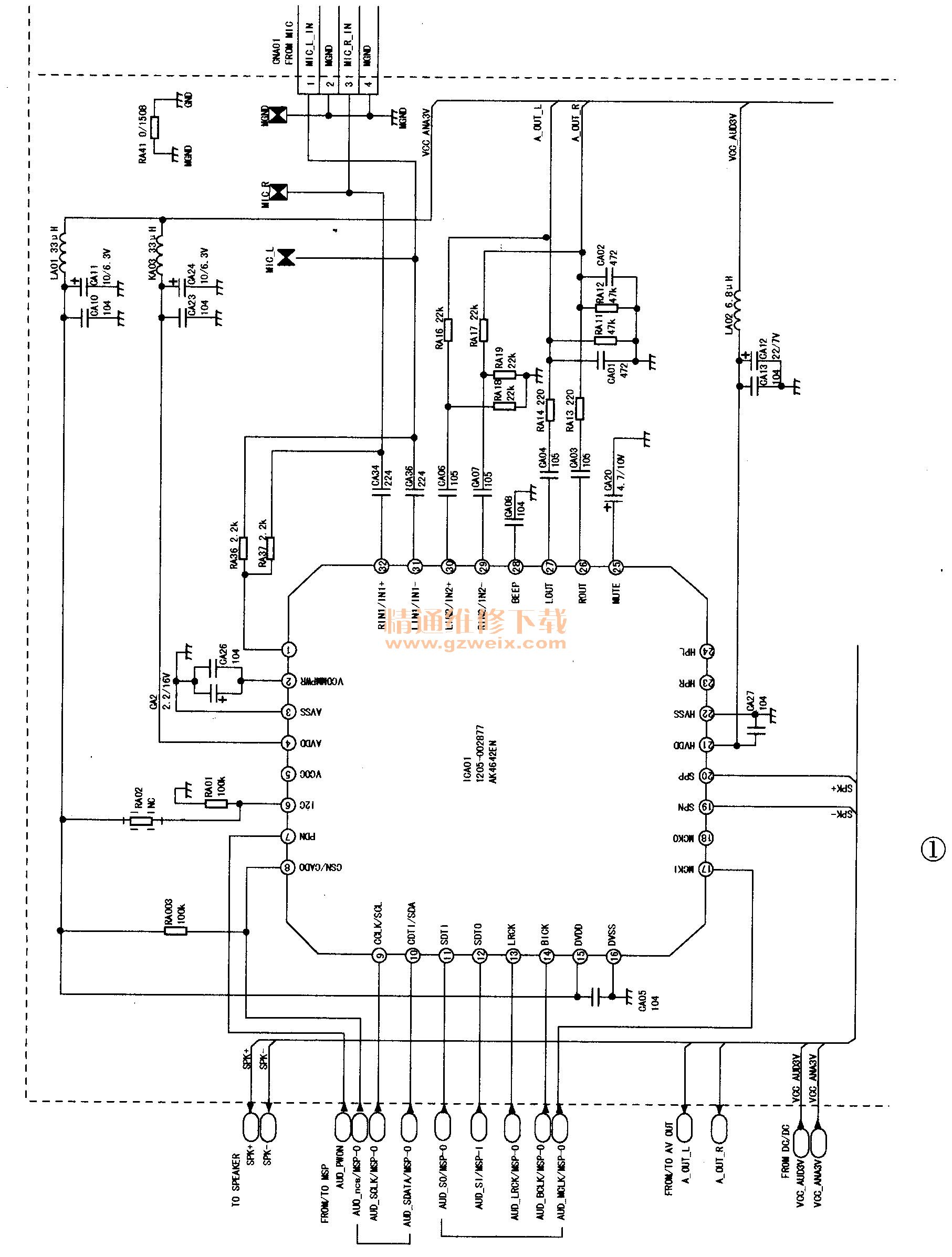 沒有AV輸出首先排除AV線是否連接正常,如正常應(yīng)查Vide-jack-Det是否為高電平狀態(tài),如測得異常需更換AV插口,如一切檢查正常應(yīng)繼續(xù)檢查音頻輸出是否正常,如測得異常需查音頻代碼I-CA01第26、27腳(電路參考圖1所示),如測得音頻輸出正常則查音頻放大器IC701~IC703芯片,如異常應(yīng)對損壞元件進行更換,如都正常說明故障是由AV線斷路故障引起。