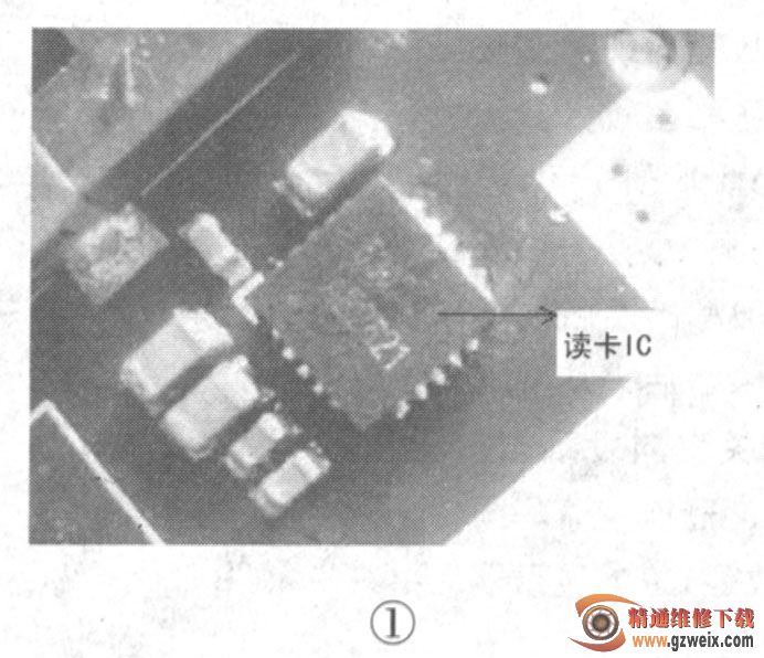 看來還是要從手機(jī)讀卡電路方面入手,用萬用表測量SIM卡座供電腳,供電正常。那么故障可能出在讀卡電路數(shù)據(jù)連接上。經(jīng)查金立V109手機(jī)的讀卡IC是卡座旁邊的AE2621(如圖1所示)。用熱風(fēng)槍對其進(jìn)行吹焊,試機(jī),手機(jī)完全正常,故障排除。原來手機(jī)不認(rèn)卡的原因是由于讀卡IC虛焊引起。
