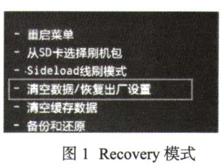 2)在Recovery模式里用音量加減鍵上下移動,電源鍵確認。用音量鍵選擇“清空數(shù)據(jù)/恢復出廠設置”選項,然后再選擇“是的—清空所有數(shù)據(jù)”選項,并按電源鍵確認,如圖1所示。