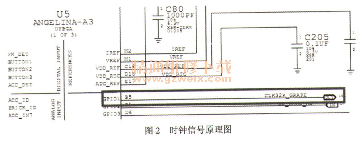 電壓測不到只能測阻值了,根據(jù)圖紙測到U19的C2腳時發(fā)現(xiàn)沒阻值,此腳位是一個時鐘信號,經(jīng)電源管理芯片輸出的,把電源管理芯片拆下來后再測U19的C2腳和U5的B5腳兩個點之間是不通的,隨即飛線,裝完芯片后,開機觸摸屏可以滑動了。