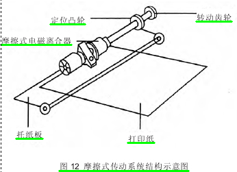機(jī)械傳動(dòng)系統(tǒng)主要負(fù)責(zé)完成打印紙張的傳送工作。它主要由傳動(dòng)齒輪、光電感應(yīng)器、搓紙輪、托紙板以及導(dǎo)軌等部分組成。由于激光打印機(jī)類型的不同,所采用的機(jī)械傳動(dòng)系統(tǒng)的具體結(jié)構(gòu)也各不相同。目前常見的紙張傳動(dòng)方式主要有吸引式傳動(dòng)和摩擦式傳動(dòng)兩種。